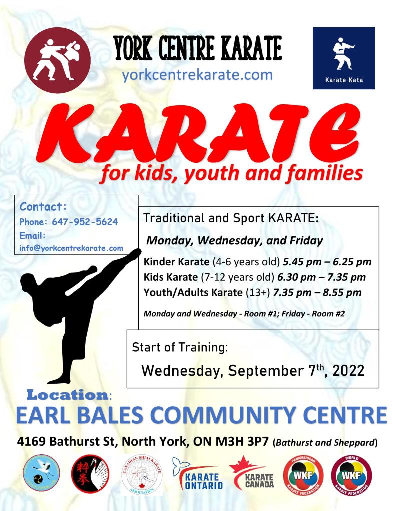 September 7th 2022 – Starting Date for Resuming KARATE Training August 30, 2022 yorkcentrekarate We are very excited to get back in training on Wednesday, September 7th, 2022. New, existing and former students are welcome to enroll. Hope to see you all there.