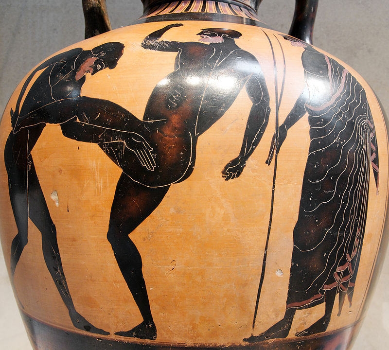 The athletes engaged in a pankration competition – i.e., the pankratiasts – employed a variety of techniques in order to strike their opponent as well as take him to the ground in order to use a submission technique.